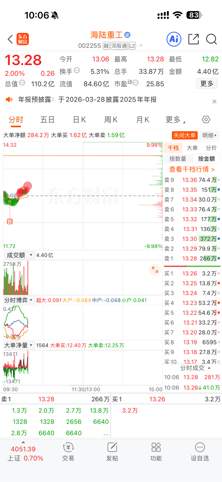 $海陆重工(SZ002255)$ 太幸运了,买了就涨