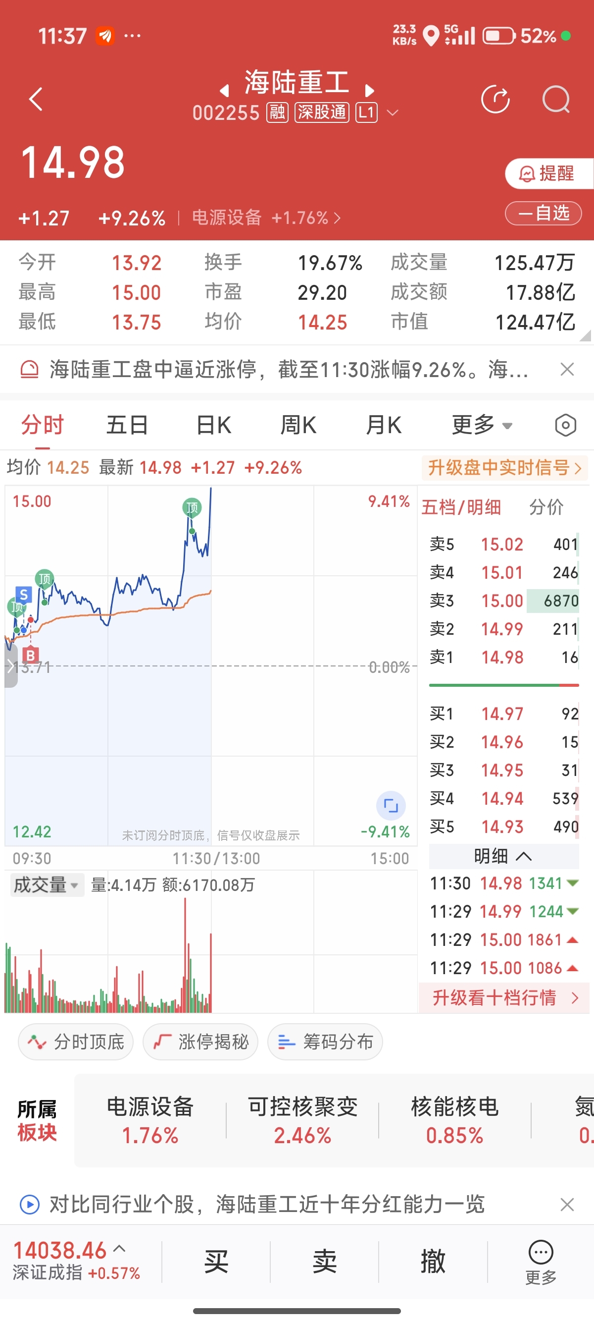 $海陆重工(SZ002255)$ 我去,成本又高了两个点,今天怎么不t了,搞啥子。