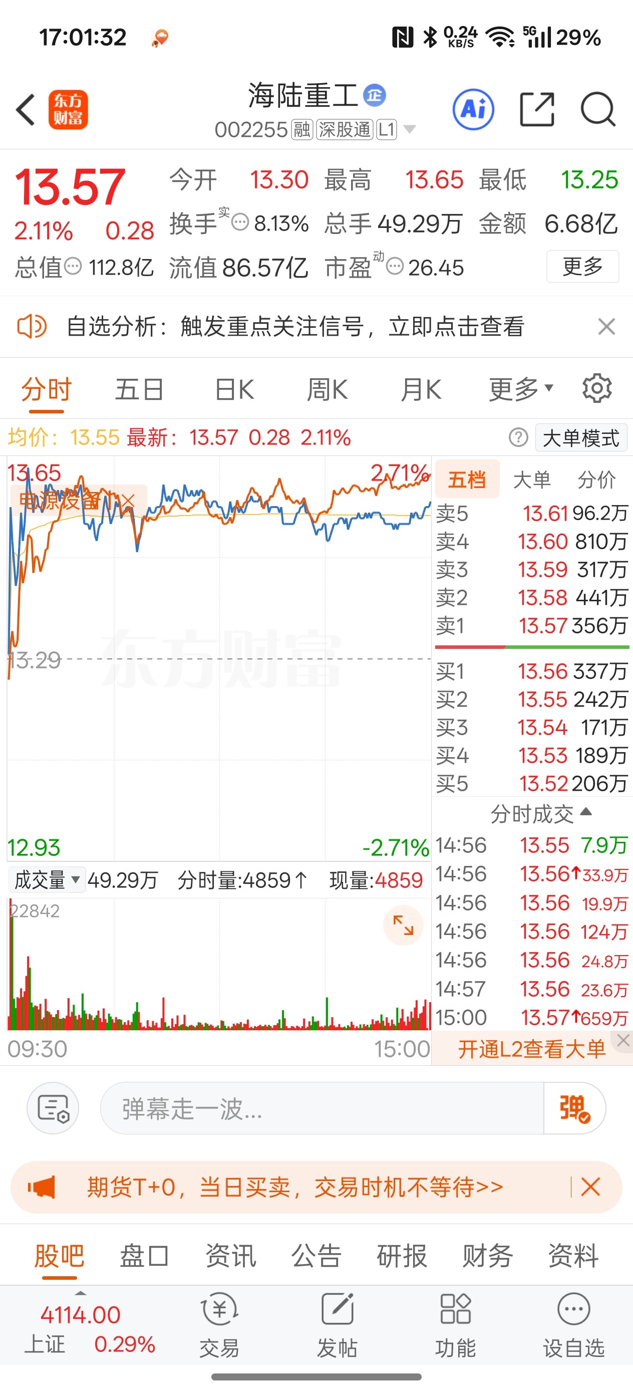 13元等你,比板块弱多了,量化主力差价为主