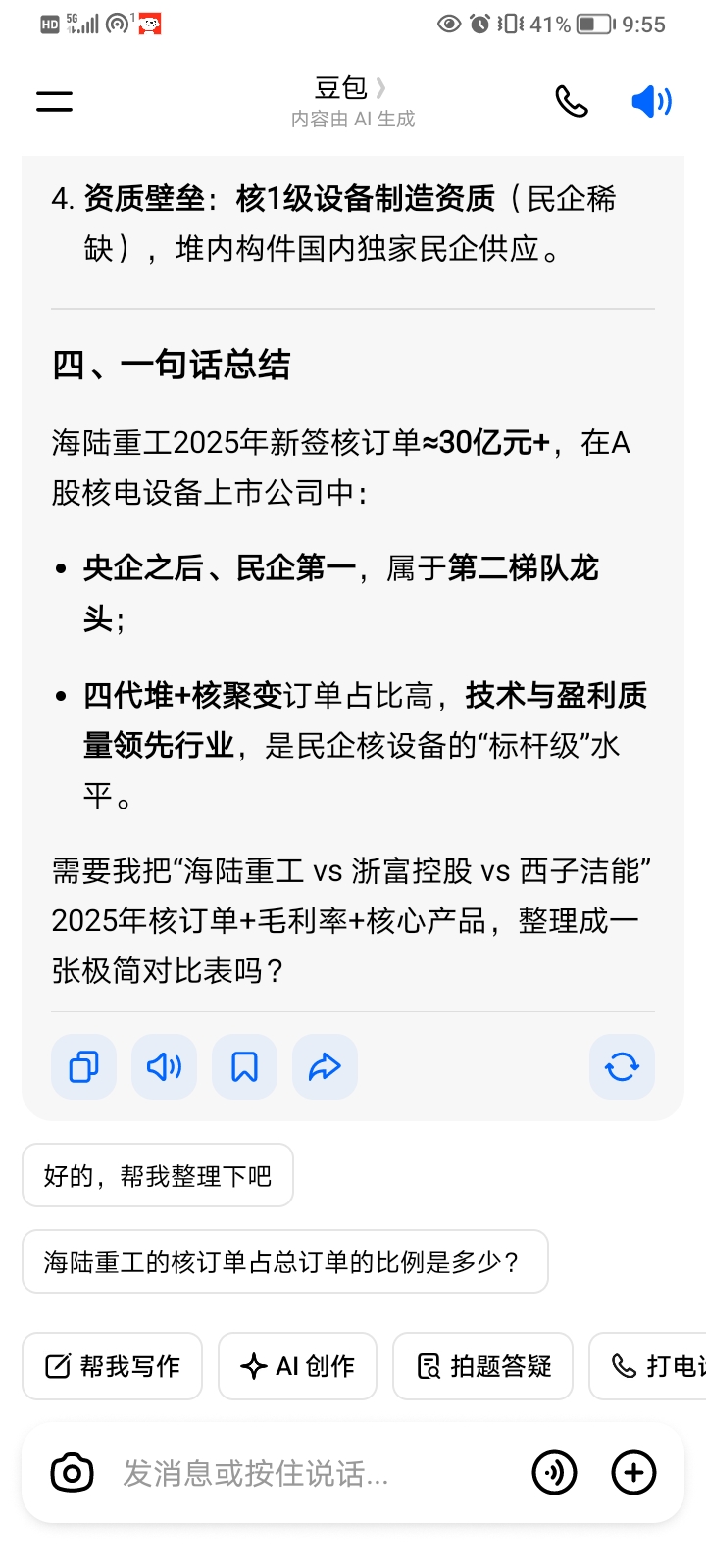 海陆重工在核能领域地位很高哦,央企之下,民企第一,我们对他要有信心!