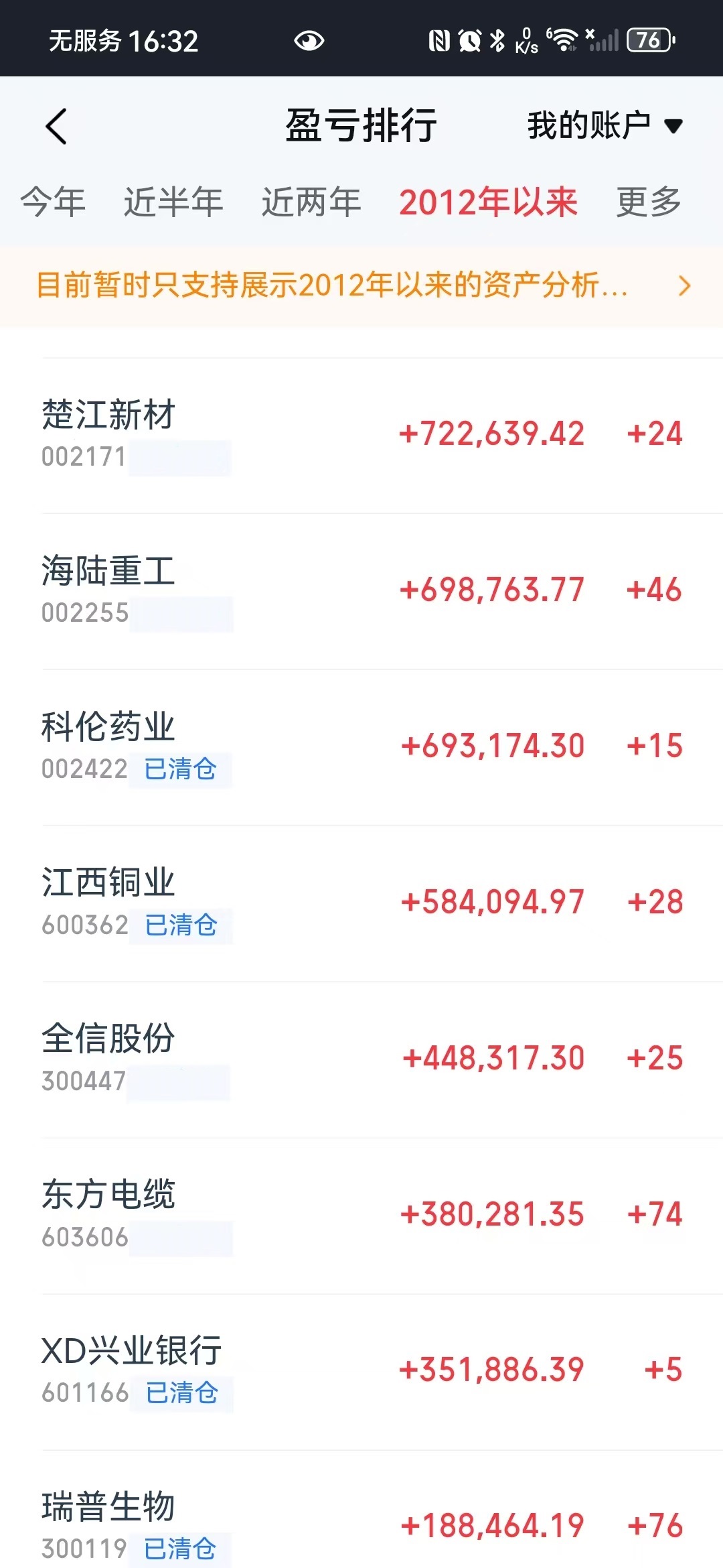 本人在海陆重工上的获益差强人意