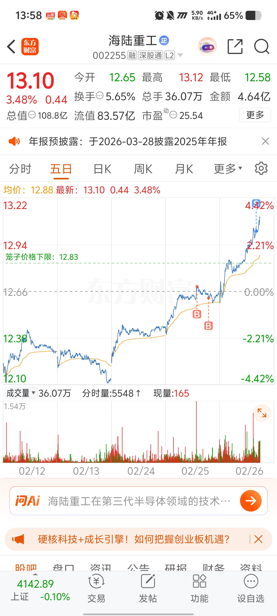 $海陆重工(SZ002255)$ 卖飞了