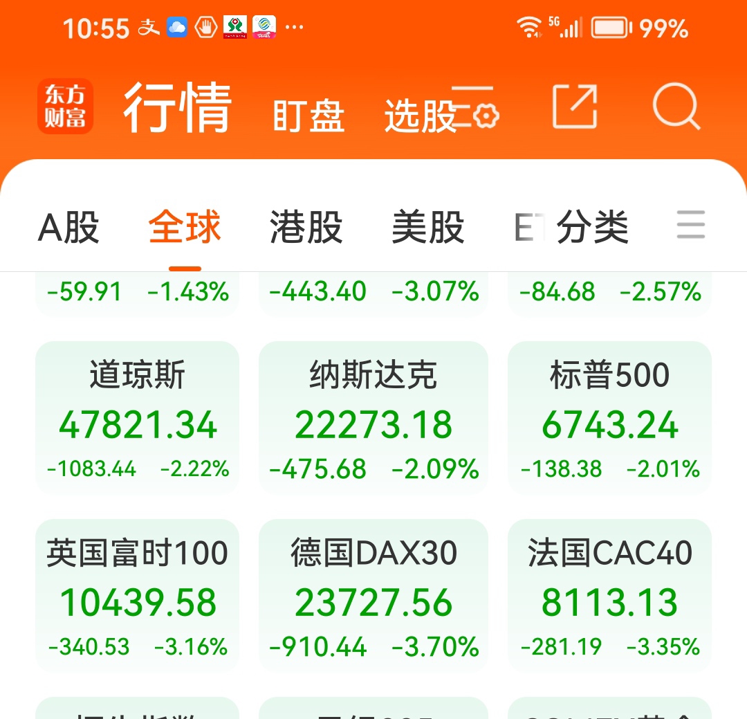$海陆重工(SZ002255)$ 糟糕!至今晚10点50分,美股及欧洲三大指数均暴跌。