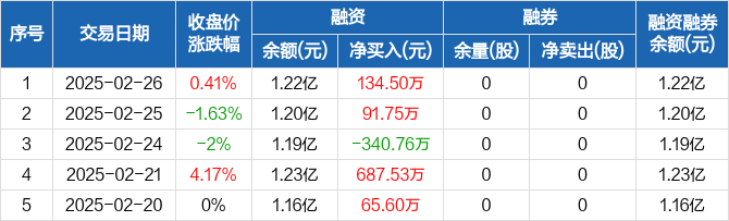兆新股份:融资净买入134.5万元,融资余额1.22亿元(02-26)