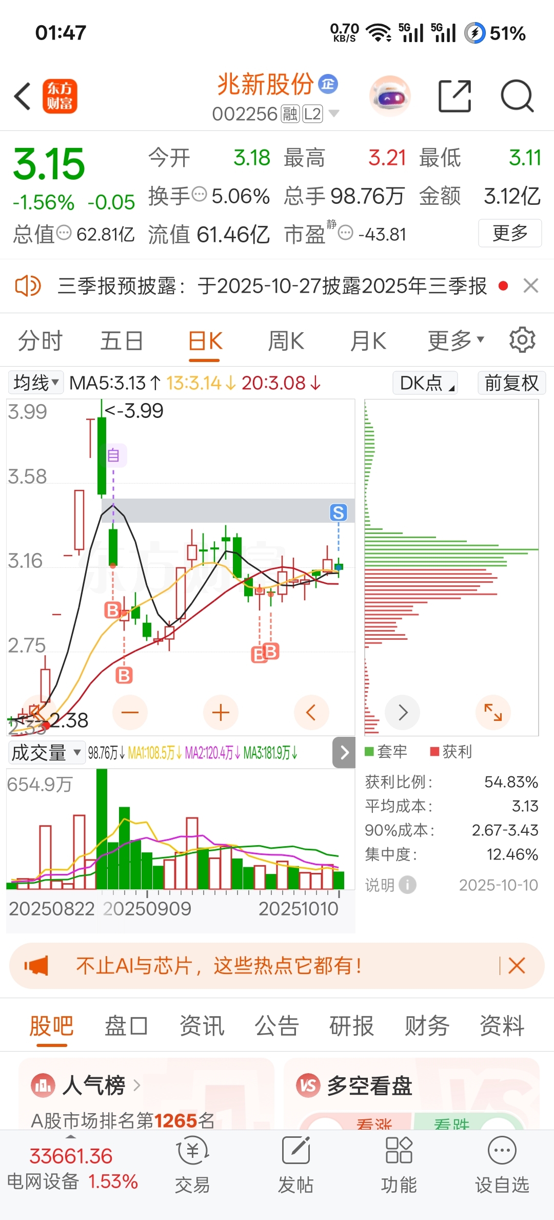 $兆新股份(SZ002256)$ 主力你可以拉了,陪了你一个月了也没见你起来,清仓了,原本的预期就是拿一个月不管赚不赚月底走人,但最后还是被你控的有点念头不舍得走,今天走了留了一手做为陪伴,