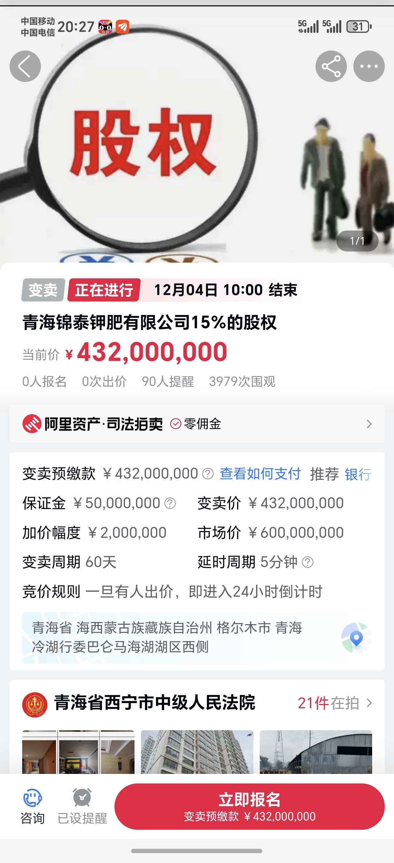 重点关注这股权拍卖