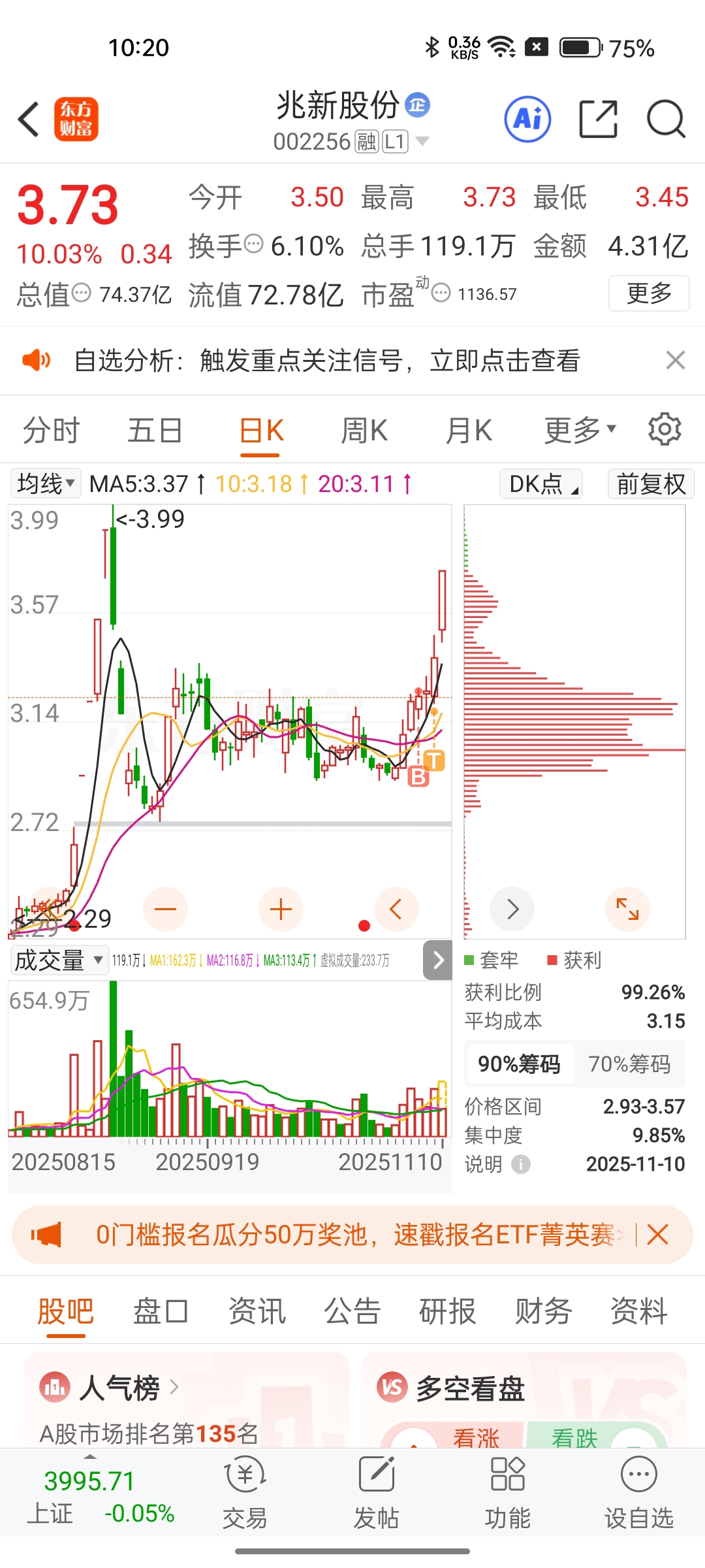 $兆新股份(SZ002256)$ 但凡晚五分钟涨停,我又要做t了