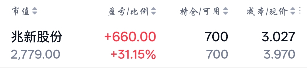 $兆新股份(SZ002256)$ 盈利30多个点,只可惜是零钱买的700手