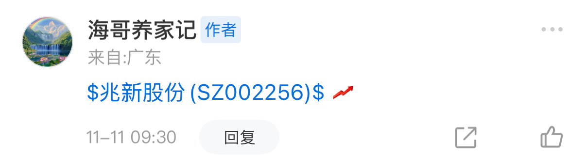 $兆新股份(SZ002256)$ 不必仰望别人的星空,自己的窗台也有月光,昨天介入兆新股份再添一板 恭喜跟踪我文章的同学们 海哥的盘感也逐一的增加
