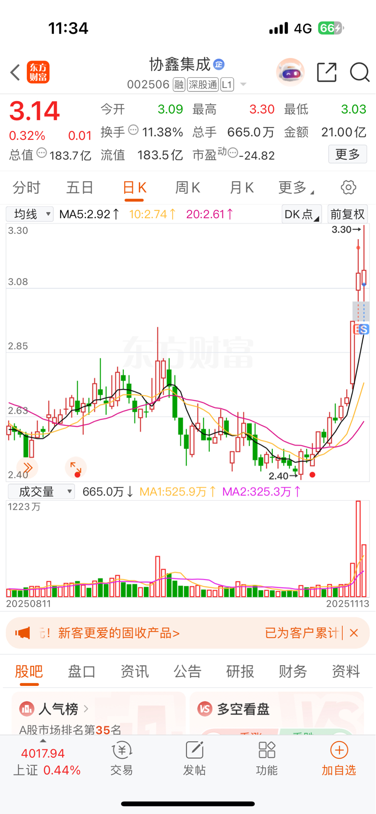 早上微亏出了协鑫集成,水下负1.7买的兆新股份,实盘记录。1、协鑫集成晚点走盈利