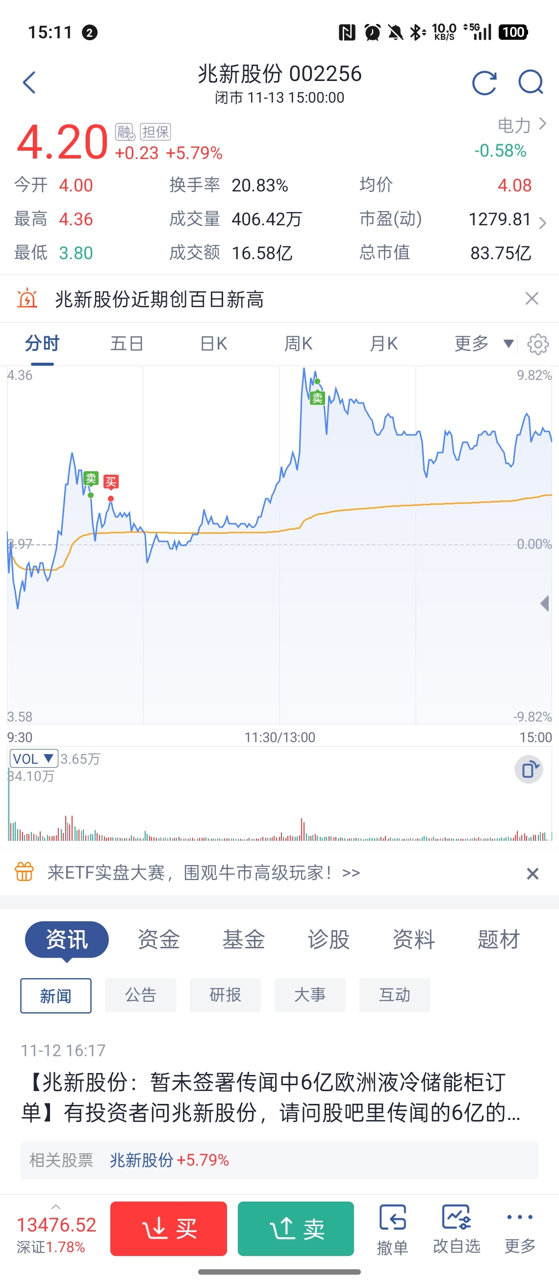 $兆新股份(SZ002256)$ 放3根巨量了,卖一半留一半是没错的,明天低开就加仓,高开也加仓,看好5块_6块