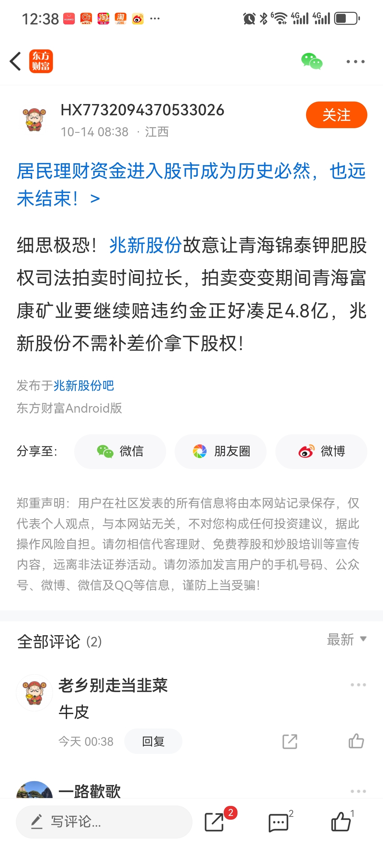 温馨提示: 1.根据《证券法》规定,禁止编造、传播虚假信息或者误导性信息,扰乱证券市场;2.用户在本社区发表的所有资料、言论等仅代表个人观点,与本网站立场无关,不对您构成任何投资建议。用户应基于自己的独立判断,自行决定证券投资并承担相应风险。《东方财富社区管理规定》