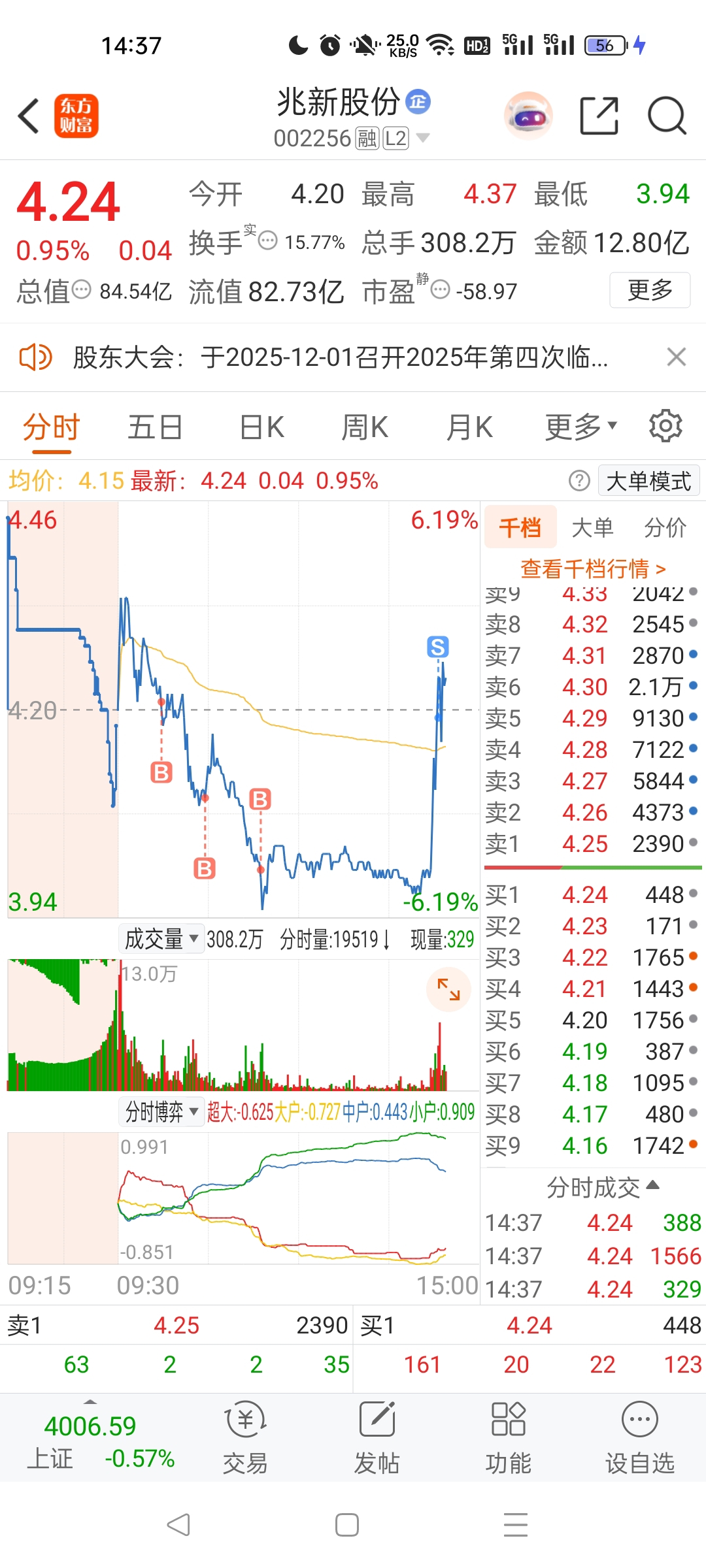 $兆新股份(SZ002256)$ 谢谢主力让我减仓,你站稳前高就行,不要多的