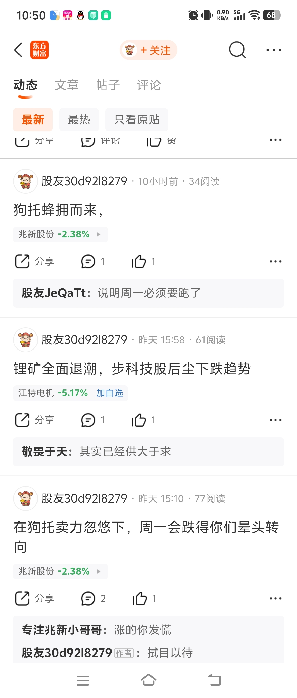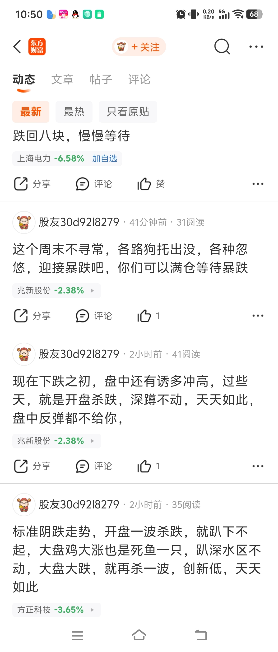 $兆新股份(SZ002256)$ 周五卖了等着周一便宜筹码接回来是没问题,可是没实力没本事的那种人还是不要这样做了吧?你看看下面这个苟周五卖了就怕周一买不回来,这周六周天都过不好了一个劲儿唱空