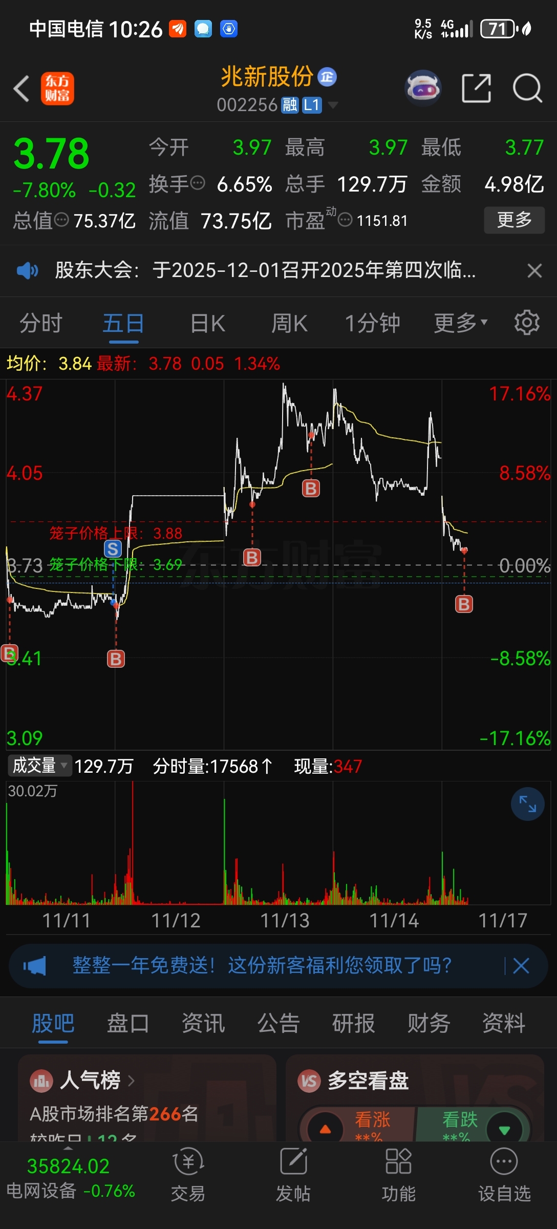 $兆新股份(SZ002256)$ 本周4块以上再走,坚持住