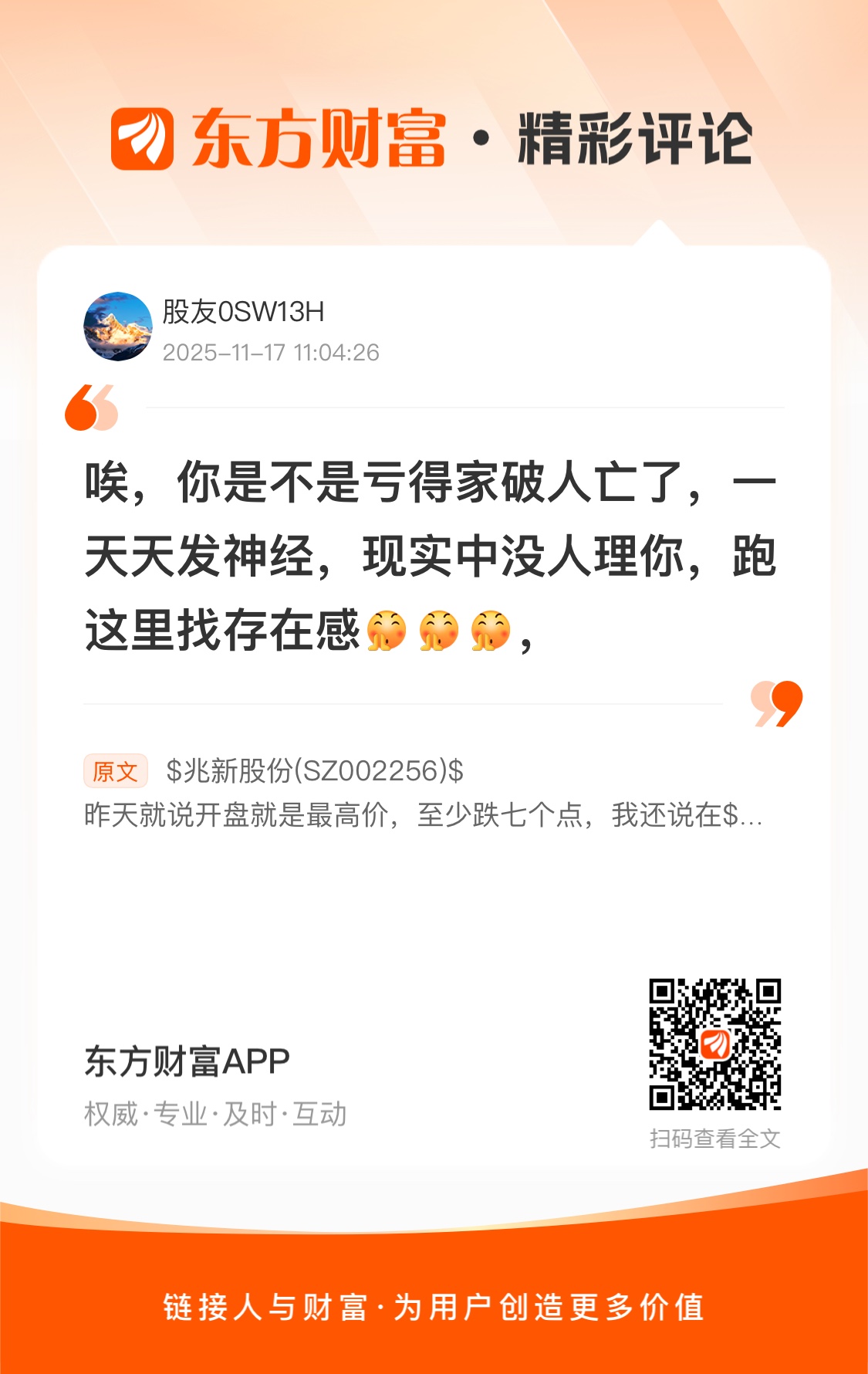 温馨提示: 1.根据《证券法》规定,禁止编造、传播虚假信息或者误导性信息,扰乱证券市场;2.用户在本社区发表的所有资料、言论等仅代表个人观点,与本网站立场无关,不对您构成任何投资建议。用户应基于自己的独立判断,自行决定证券投资并承担相应风险。《东方财富社区管理规定》
