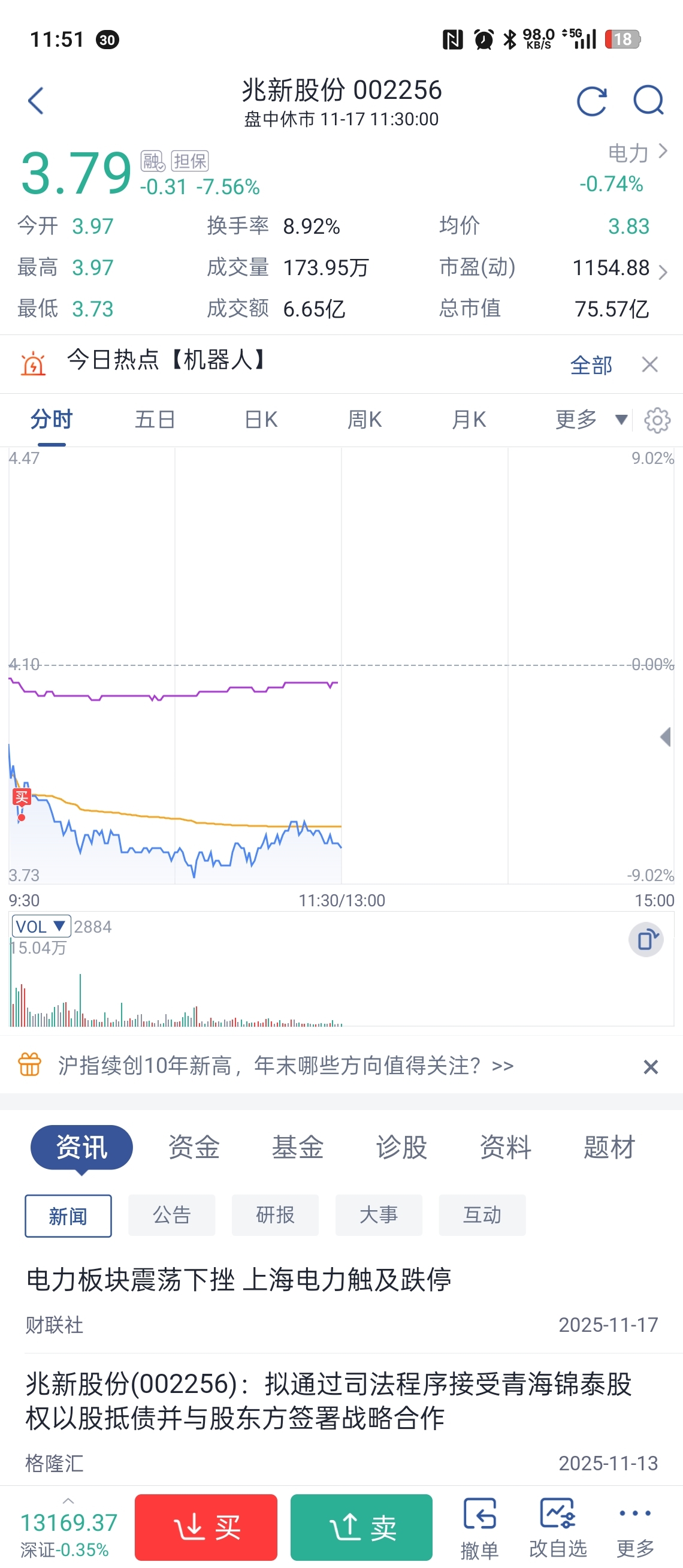 $兆新股份(SZ002256)$ 今天是吃肉还是吃面
