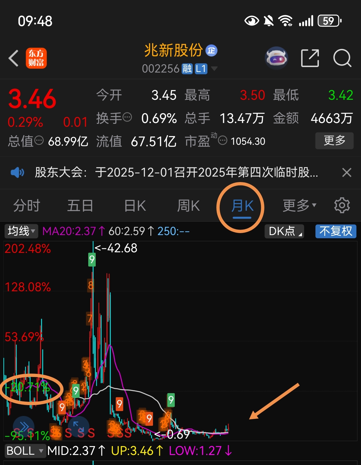 $兆新股份(SZ002256)$ 看月线还在水下,锁仓出去旅游