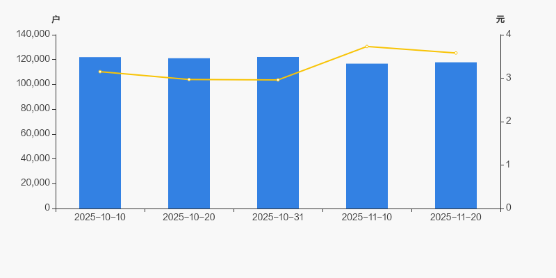 2025年10月10日至今,公司股东户数有所下降,区间跌幅为3.41%。2025年10月10日至2025年11月20日区间股价上涨13.65%。