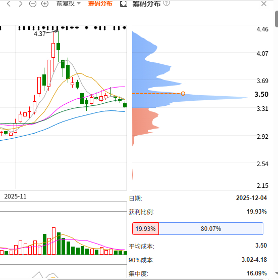 还有20%获利盘,还要往下,获利盘5%以下买100%卖,散户听着就这么简单