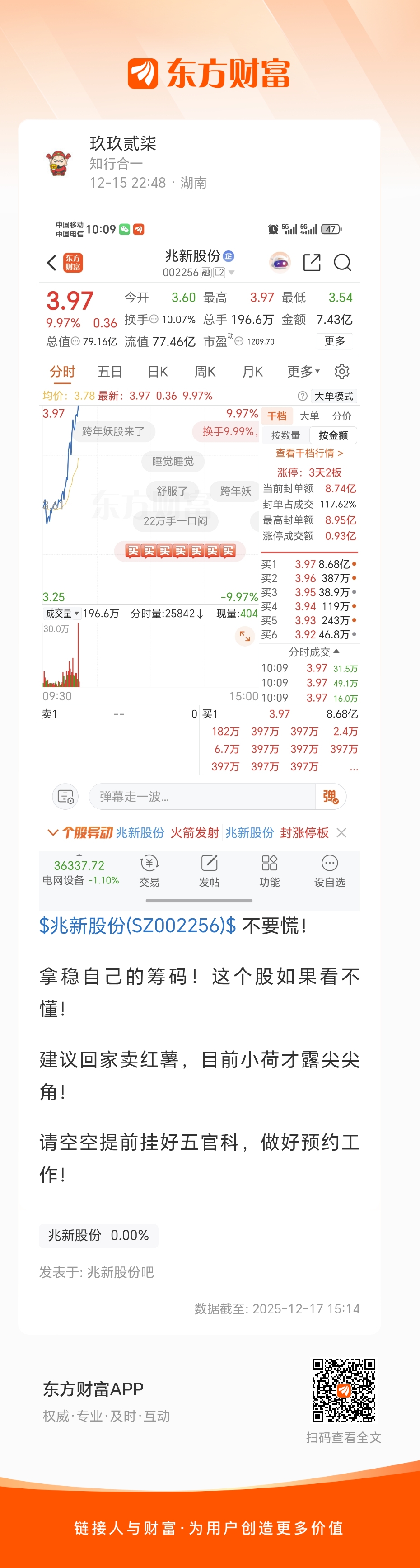 温馨提示: 1.根据《证券法》规定,禁止编造、传播虚假信息或者误导性信息,扰乱证券市场;2.用户在本社区发表的所有资料、言论等仅代表个人观点,与本网站立场无关,不对您构成任何投资建议。用户应基于自己的独立判断,自行决定证券投资并承担相应风险。《东方财富社区管理规定》