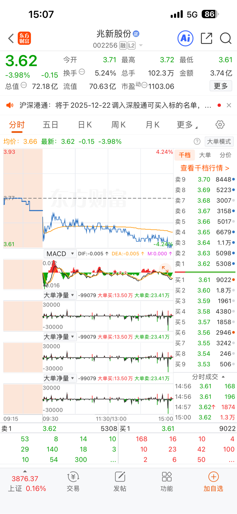 $兆新股份(SZ002256)$ 尾盘不识泰山误入,风险:扣非净利仍为负,主业盈利偏弱;收购与盐湖提锂项目存在落地与盈利不及预期风险;新能源板块波动、大盘情绪影响短期走势,希望主力能让大学生喝口汤立马走