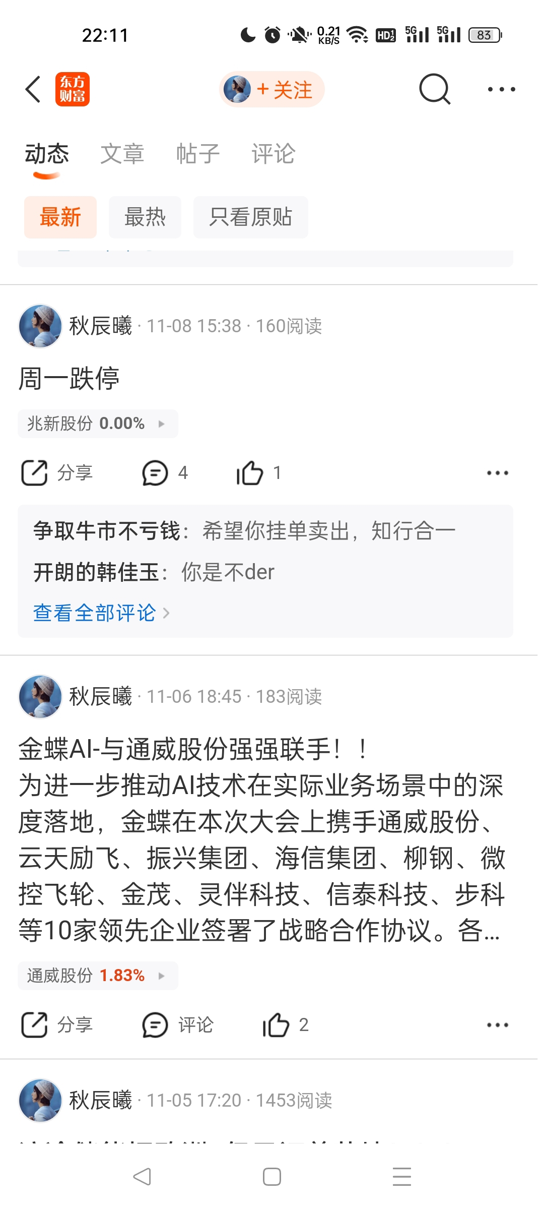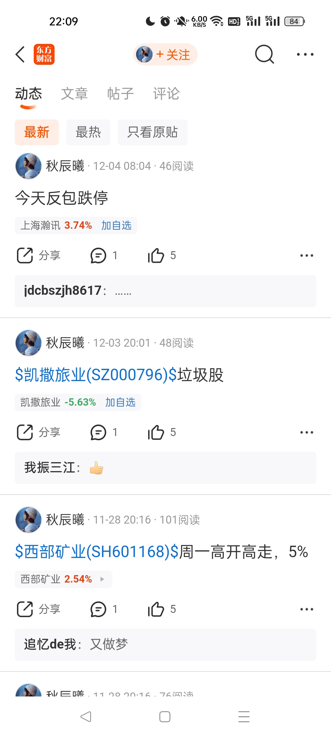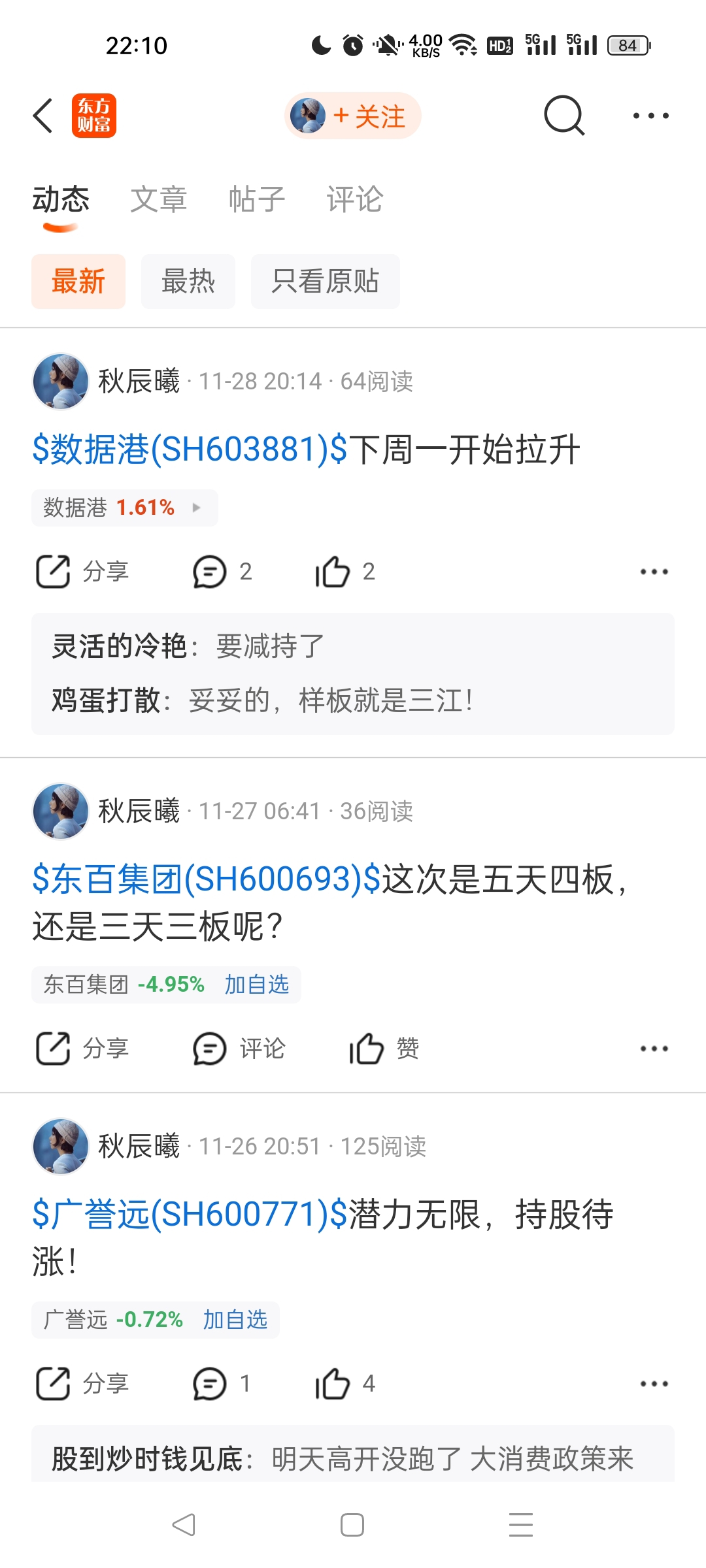 观察这个人的帖子,只要唱多就下跌趋势,反指率百分之95,昨天他唱多,今天他唱空。