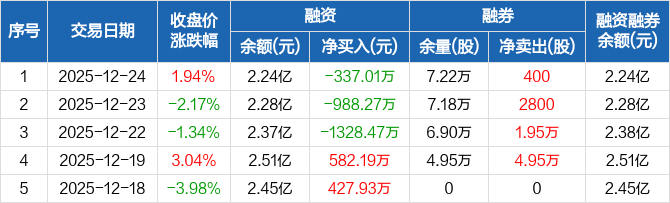 兆新股份:连续3日融资净偿还累计2653.76万元(12-24)