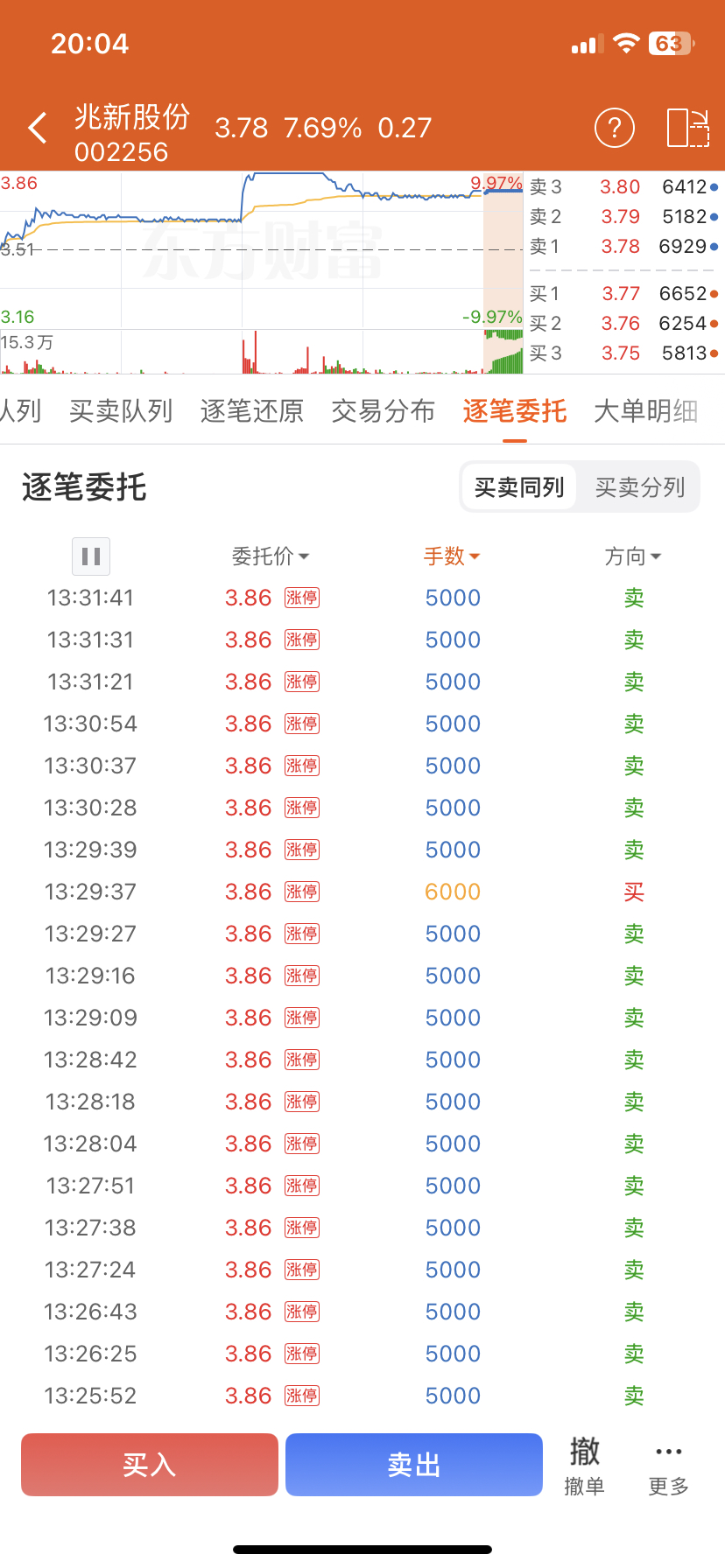 $兆新股份(SZ002256)$ 老庄在 涨停板上仅超大单就砸了10万手,明天大阴线伺候