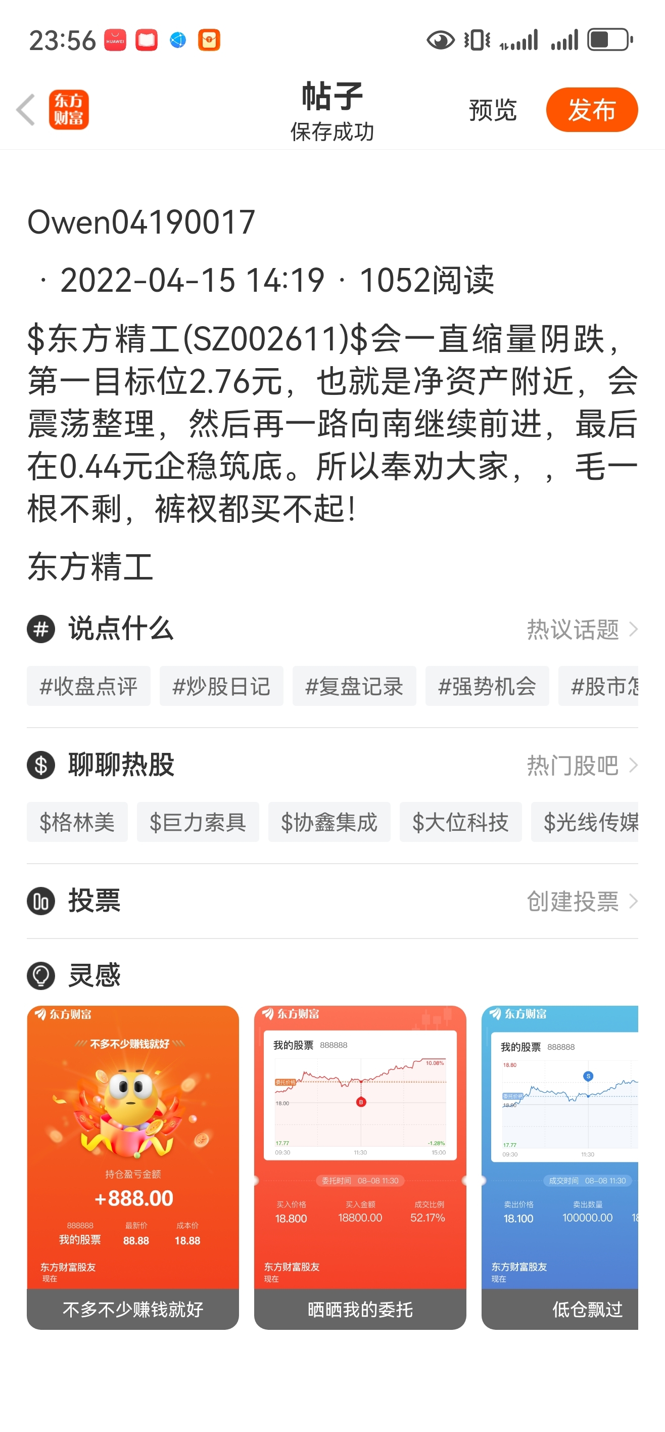 温馨提示: 1.根据《证券法》规定,禁止编造、传播虚假信息或者误导性信息,扰乱证券市场;2.用户在本社区发表的所有资料、言论等仅代表个人观点,与本网站立场无关,不对您构成任何投资建议。用户应基于自己的独立判断,自行决定证券投资并承担相应风险。《东方财富社区管理规定》