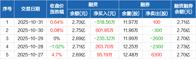 利尔化学:融资净偿还518.56万元,融资余额2.7亿元(10-31)