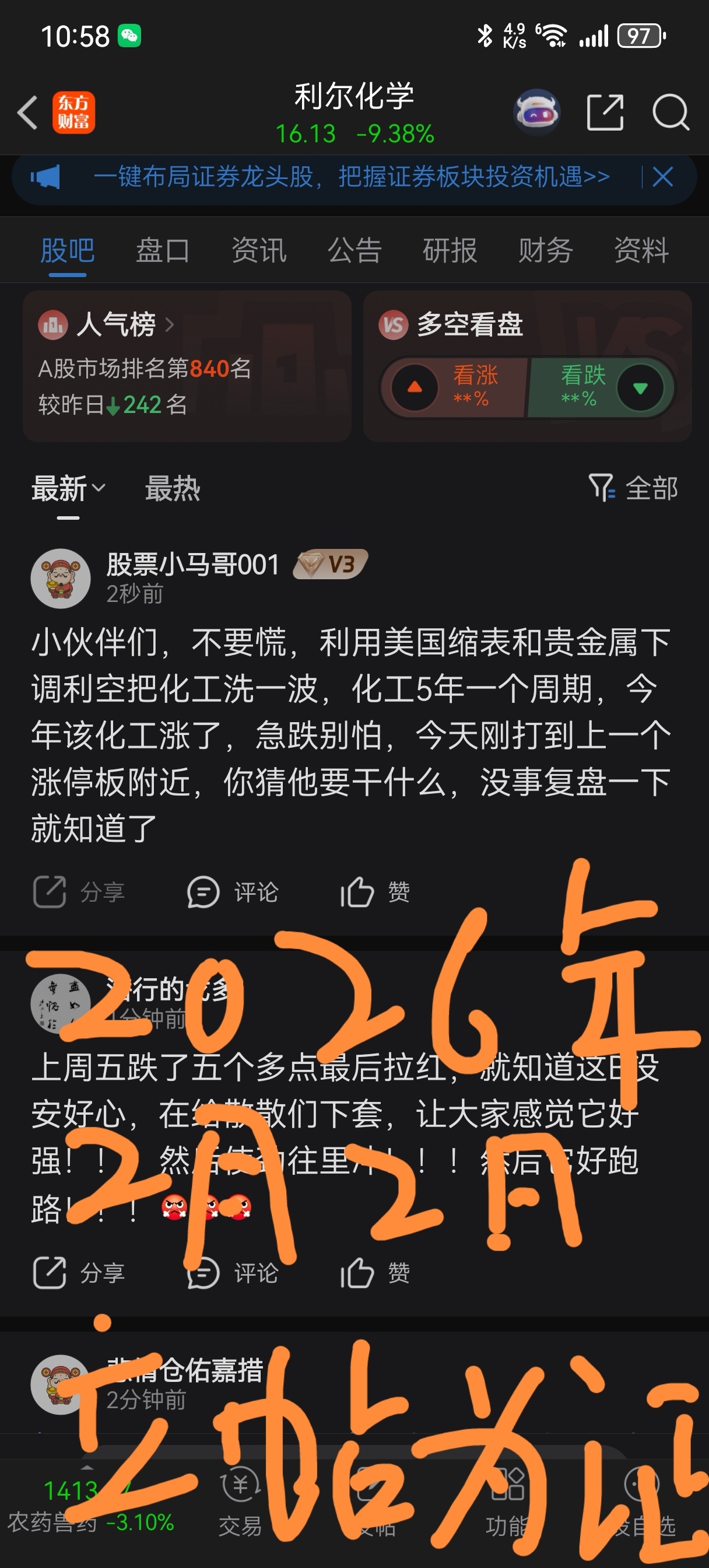 温馨提示: 1.根据《证券法》规定,禁止编造、传播虚假信息或者误导性信息,扰乱证券市场;2.用户在本社区发表的所有资料、言论等仅代表个人观点,与本网站立场无关,不对您构成任何投资建议。用户应基于自己的独立判断,自行决定证券投资并承担相应风险。《东方财富社区管理规定》