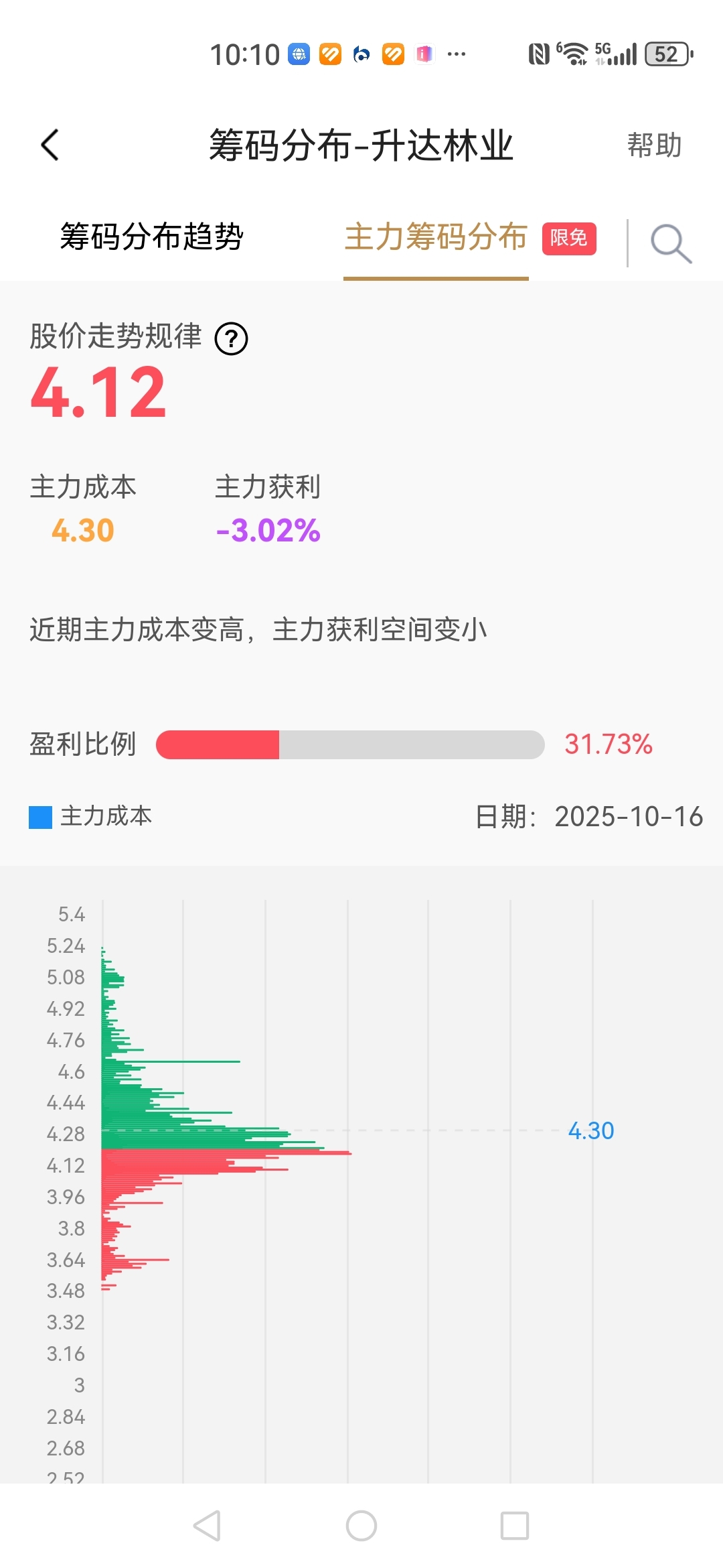 $升达林业(SZ002259)$ 今录得中金财富主力成本