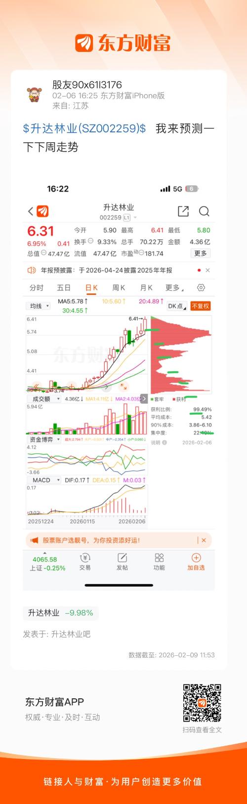 $升达林业(SZ002259)$  我来预测一下下周走势
