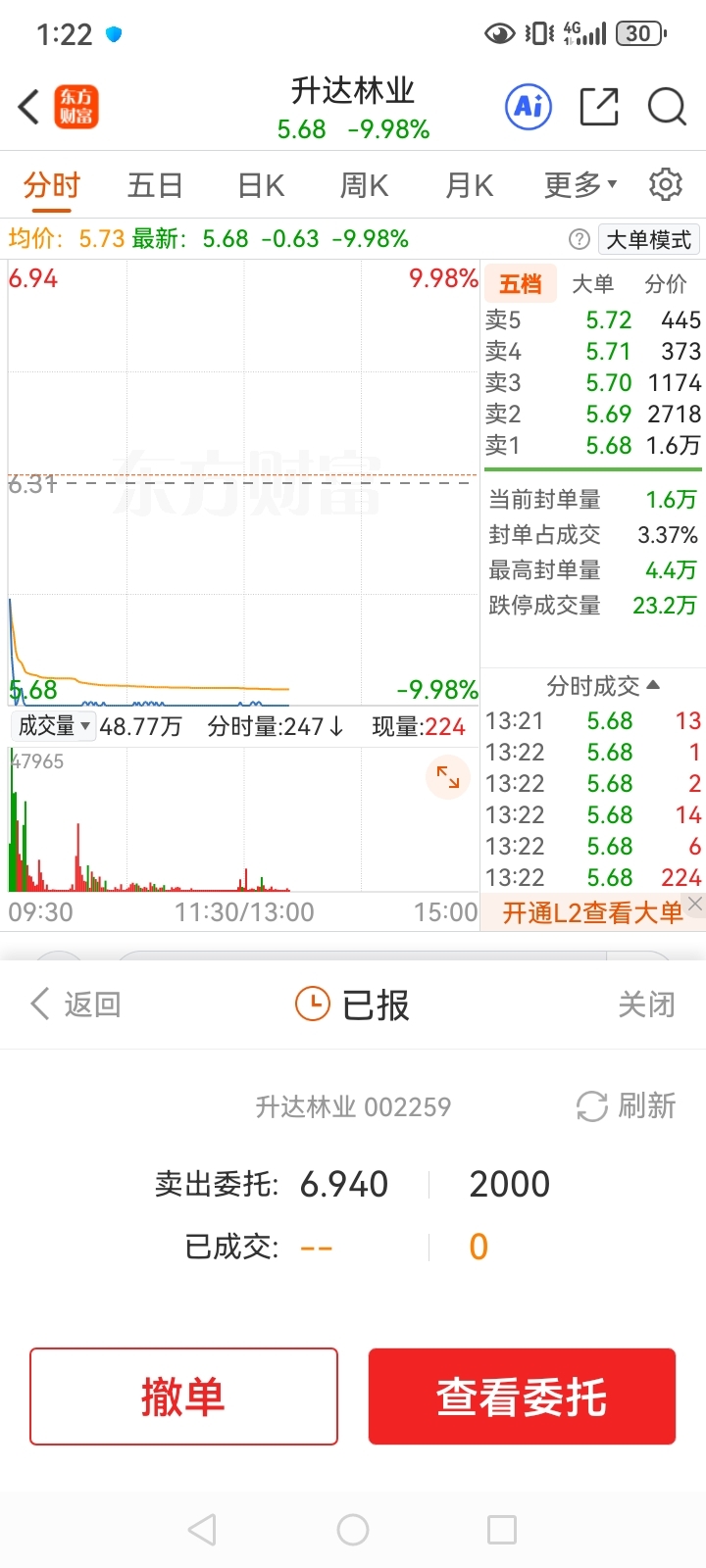 $升达林业(SZ002259)$ 我非要挂涨停卖!