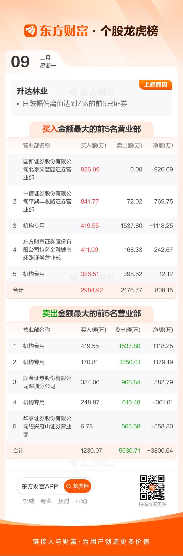 升达林业(002259)龙虎榜数据(02-09)