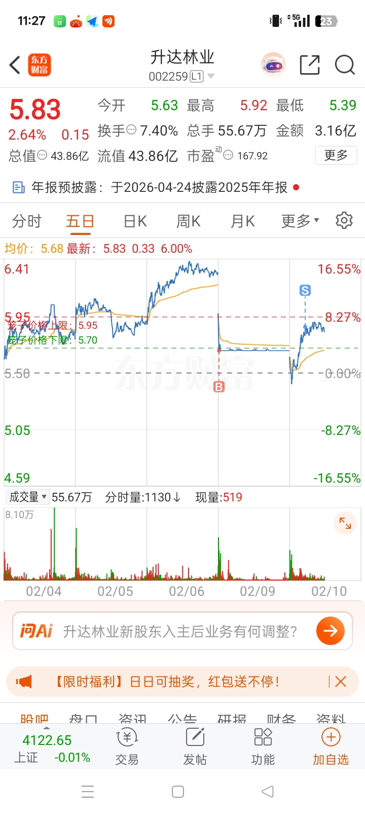 $升达林业(SZ002259)$ 刚下班,587被吃了
