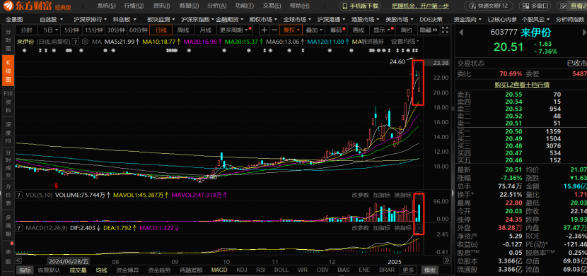 锋龙股份:早盘高开以后,虽然盘中一度冲高,但是在冲高以后,没有继续往上进行上涨,反而量能多辆回落,不过毕竟占据机器人概念和新能源车好的题材中,机器人领域,刚说了,个股出现了分歧,已经在做删选,不过锋龙股份整体在技术上来说,也不是一直蓄量,然后快速拉涨的那种上涨走势,最近是踩着30日均线,量能放量,不断土坯高点,此次回落,主要继续关注下方均线支撑,还有就是缓慢震荡上涨趋势的延续性。
