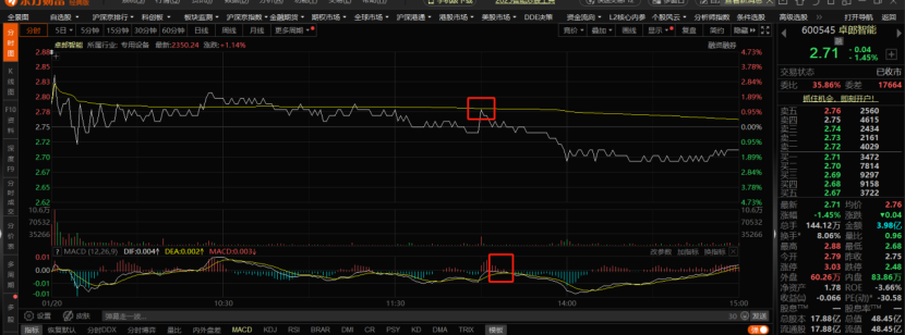 卓郎智能:走势上来说,今日其实也是震荡,不过震荡行情之中,还是收盘在上周五低点位置下方,今日整体盘面之中,其实在低价股领域,今日还是涌现除了不少涨停的个股,不过卓郎智能虽然属于新型工业化领域,但是技术上在上周五冲高回落以后,被30日均线给压制住了,今日盘中震荡,也是想破了30日均线压制,可惜量能缩量,只能继续在30日均线位置下方收盘。