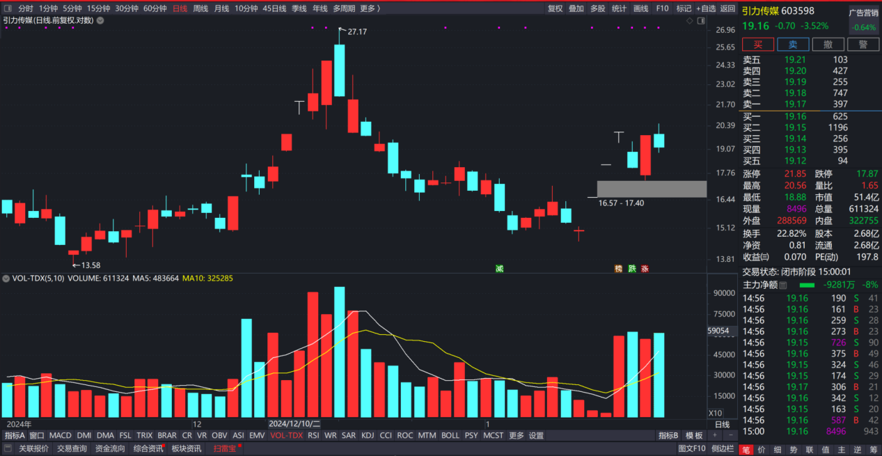 引力传媒:今天大部分时间都是在 水下震荡,量能放的比昨天还大,收盘没有跌破五日线。对这种走势,很多人可能会感到困惑,因为最近三天都放了很大的量,但是没有拉升,那么后续到底会如何选择方向?其实很难预测,因为现在小红书的题材已经人人皆知,没有预期差了,接下来就看走势,制定好对策就好了。