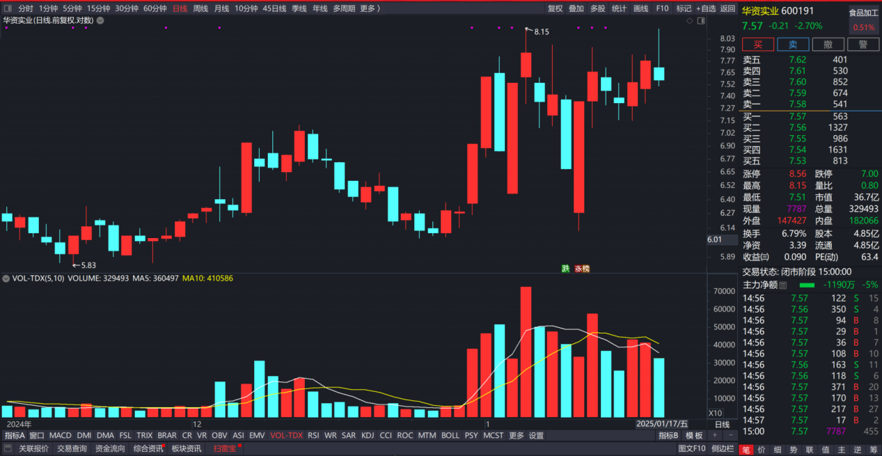 $华资实业(SH600191)$