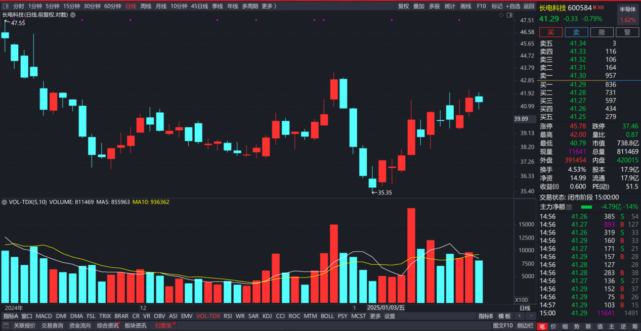 今天全天都在走震荡,早盘按照计划执行了一些。今天的行情,走强的都是流通市值几百亿的品种,多以行业龙头为主,小票都是拖油瓶的角色。这种市场行情下,流动性不足,然后还纷纷流入大票,小票的境况可想而知。牛叔今天选这只,也是看到市场的风向变了,所以现在打算逐步调整方向了。该股是全球领先的集成电路制造和技术服务提供商,提供全方位的芯片成品制造一站式服务,公司在在半导体存储市场领域的技术实力很雄厚,公司的封测服务覆盖 DRAM、Flash 等各种存储芯片产品,处于国内行业领先的地位。目前日线走势来看 沿着5日均线逐步爬升,只要这条线不破,短期就没有什么可担心的