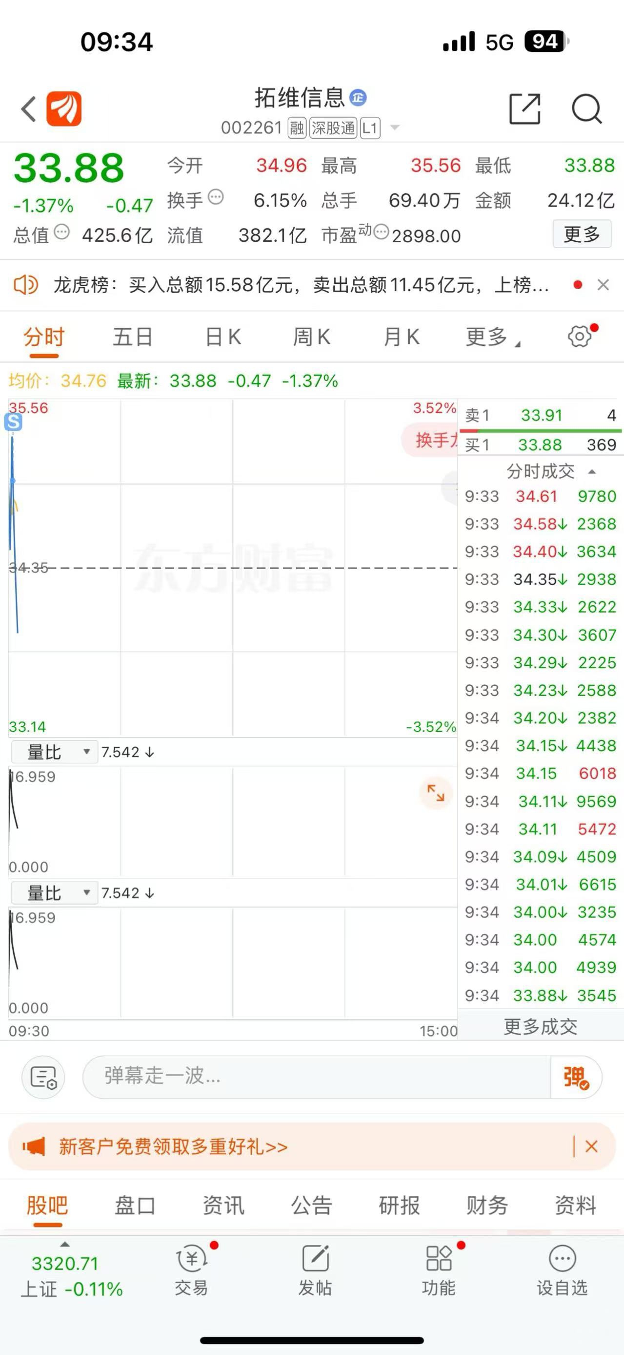 $拓维信息(SZ002261)$ ,拓维信息当前无连续增减仓现象,主力趋势不明显,主力轻度控盘,也是保证利润出局观望