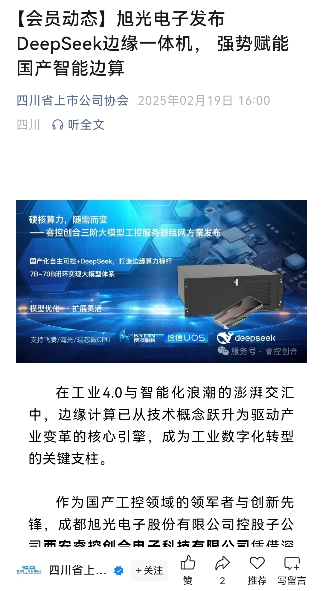 旭光电子:DeepSeek边缘一体机+半导体芯片+业绩支撑+小市值(流通市值39