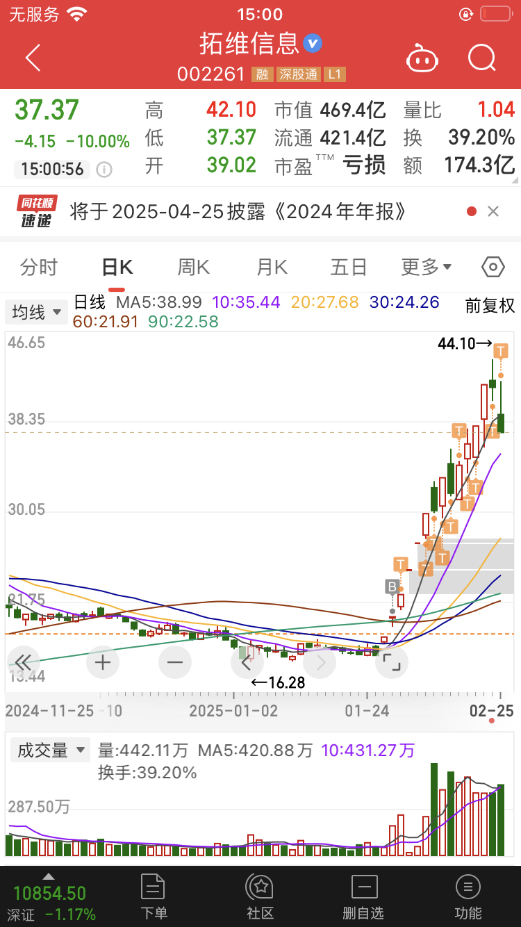 $拓维信息(SZ002261)$ 昨天小T了一下,没想到尾盘跌停!不过参考杭钢股份和去年的常山北明,10日线以上硬抗!不到目标价誓不罢休!