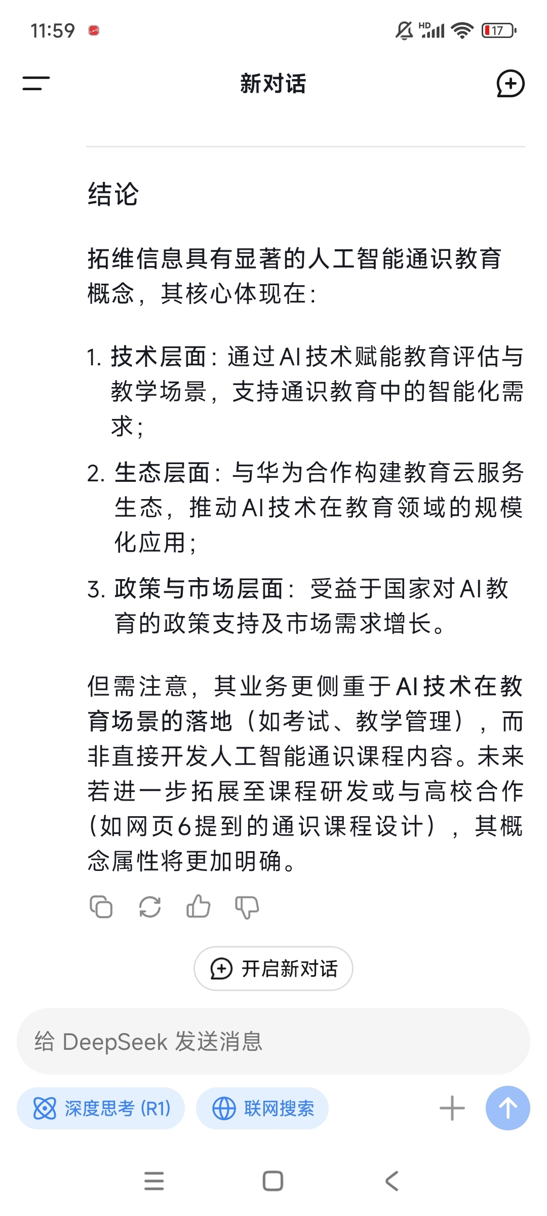 $拓维信息(SZ002261)$ 国家发布育儿起草方案……北京市又发布人工智能通识教育方案……问了下deepseek……下周不会有反转吧……就算下周依然下跌……但是让我周末有个自我安慰也好