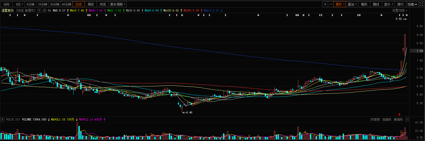 $澄星股份(SH600078)$:今天个股早盘出现一字板涨停开盘,连续4个交易日走出4连板的走势。从基本面来看,公司主要的业务是属于磷化工的各类生产,其次则是涉猎了部分的碳酸锂电池等各项业务,所以才会受到了资金的炒作。从技术结构形态来说,今天的一字板属于加速的阶段,而且很明显,这一轮的高度,个股大概率是处于5板就会到头,既然今天出现一字板涨停,没有给予任何的可能性,那么在此情况之下,只能说有缘无分了。