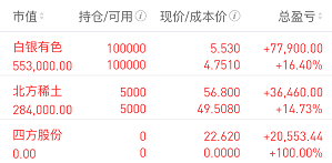 白银有色:今天个股作为有色白银里面的龙头,早盘一度收出涨停盘,整个大结构继续保持多头向上,技术形态完整,没有发生明显的结构性的变化。而且在当前白银期货价格不断创出新高的过程当中,公司基本面不断改善,又是属于月线级别的大突破行情,日线级别技术结构继续保持在5天均线的上方。所以受此影响之下,继续保持信心。