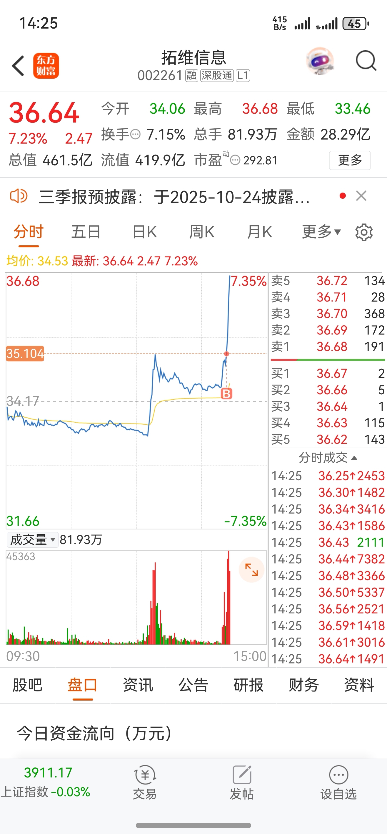 $拓维信息(SZ002261)$ 什么情况,买了3次才抢到。常山赵子龙百万封单,发现晚了。赶紧过来追拓维
