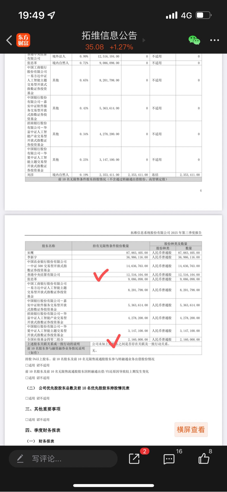 $拓维信息(SZ002261)$ 中央结算,社保基金都来了。
